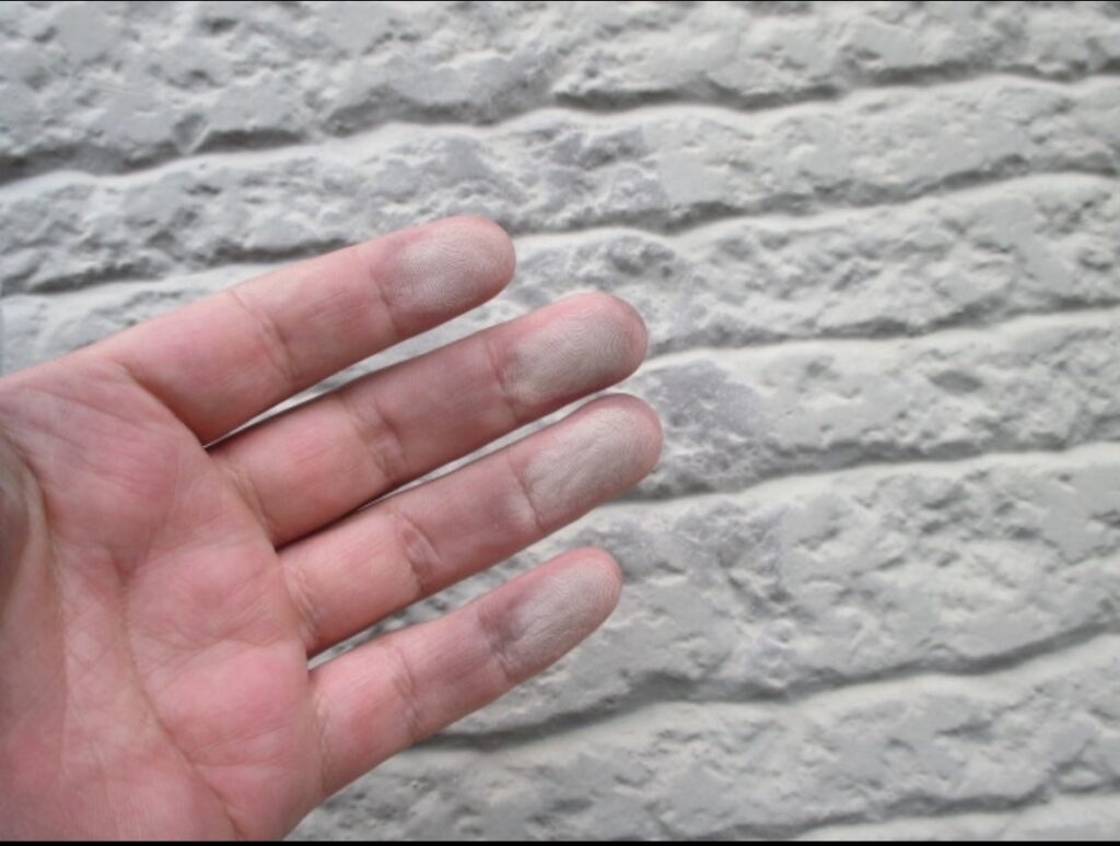 外壁に手で触れると白い粉がついてくるのは劣化のサイン。塗り替え時期です。