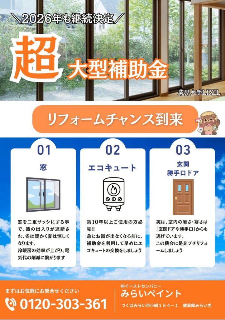 こんにちは(*ノωノ)! 「お家のことなら何でもみらいペイントへ!」 そんな思いを胸に、つくばみらい市を中心に活動している みらいペイントです🎵 ⸻ 2026年度も国から… -